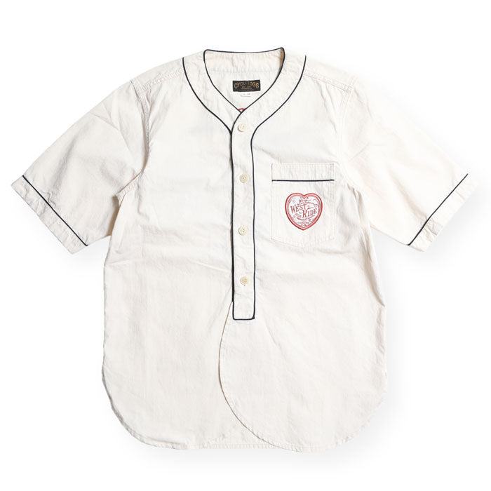 Inspired by a unique and charming antique baseball shirt, it is made of 100% cotton WEATHER CLOTH. The fabric has high density and stiffness. The front, collar and cuffs all have piping details to enhance the visual silhouette. The heart-shaped patch on the left chest and the large area of chain car embroidery on the back are not only the classic designs of this season, but also show the simple love of youth to move forward regardless of everything! The theme of this season is the pride of Long Rider!