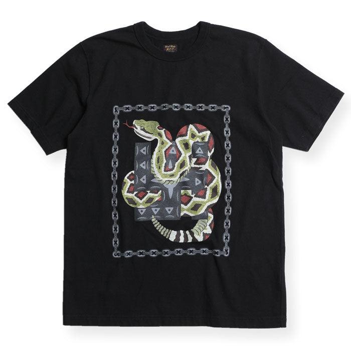 An actual vintage dragon graphic is integrated into West Ride's unique worldview, blending a rattlesnake with a swastika and surrounded by chains. The swastika in the picture is composed of 4 L (LOVE / LUCK / LIFE / LIGHT). It is also because of this design that West Ride and Larry Smith's swastika silver chain series are created. Since the color blocks are quite rich, a total of seven plates are used for printing, which is even more time-consuming.