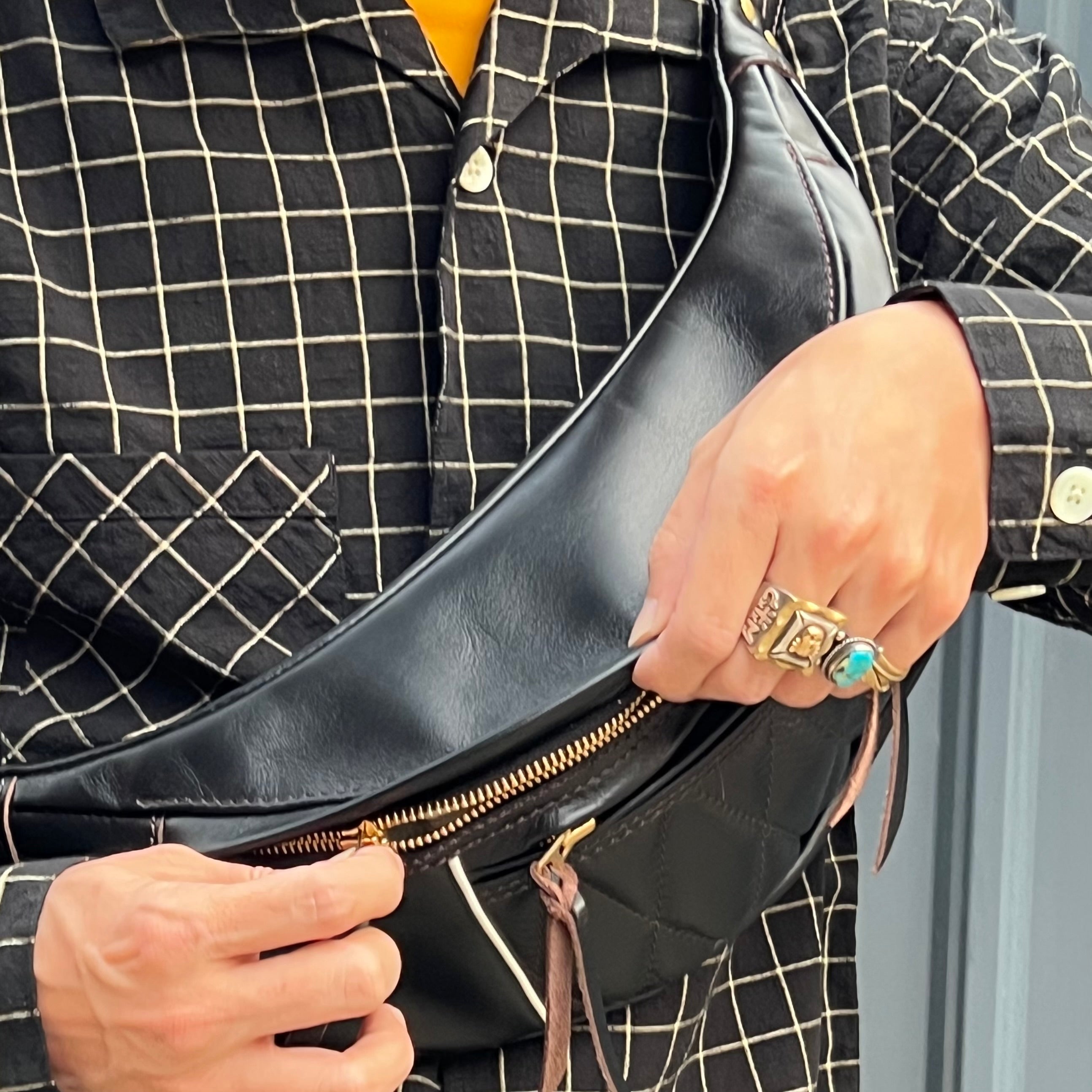 WEST RIDE's very popular fixed-range horsehide waist bag style, ORIGINAL HORSEHIDE VEGETABLE TANNED SEMI-ANILINE FINISH, is made of Japanese high-grade undyed (tea core) vegetable-tanned horse leather. The rich oil and the delicate texture of the horsehide are quite on point! The concave and convex surface formed by the large area of diamond-shaped checkered stitching on the front is very beautiful, and with use and friction, I believe that the tea core color slowly revealed will be more charming.