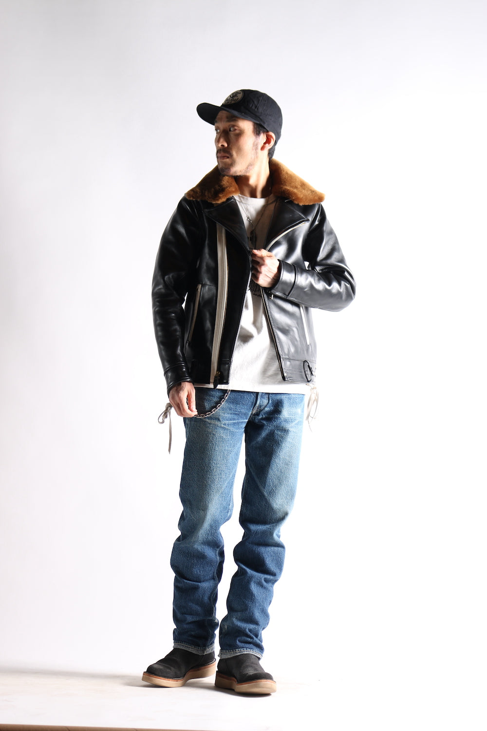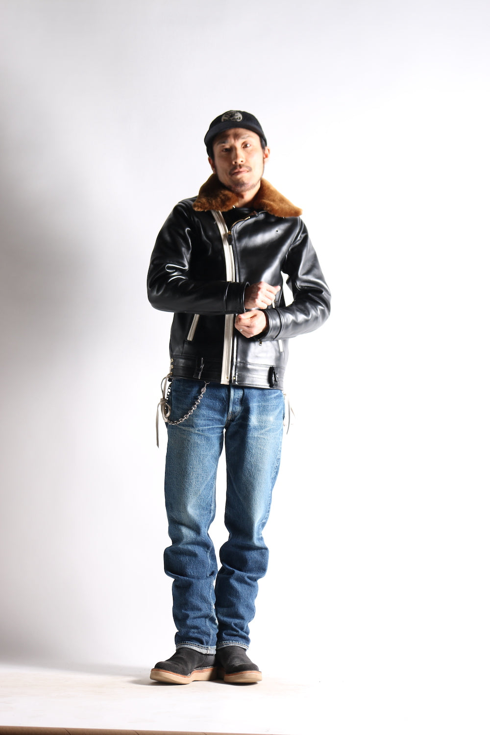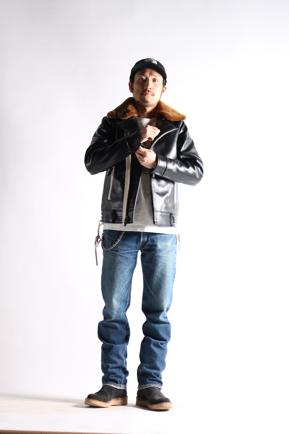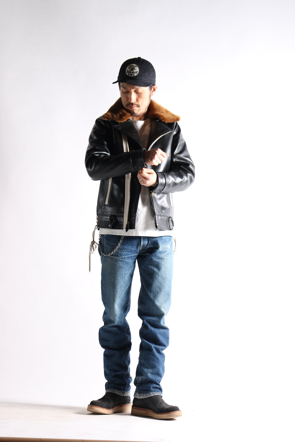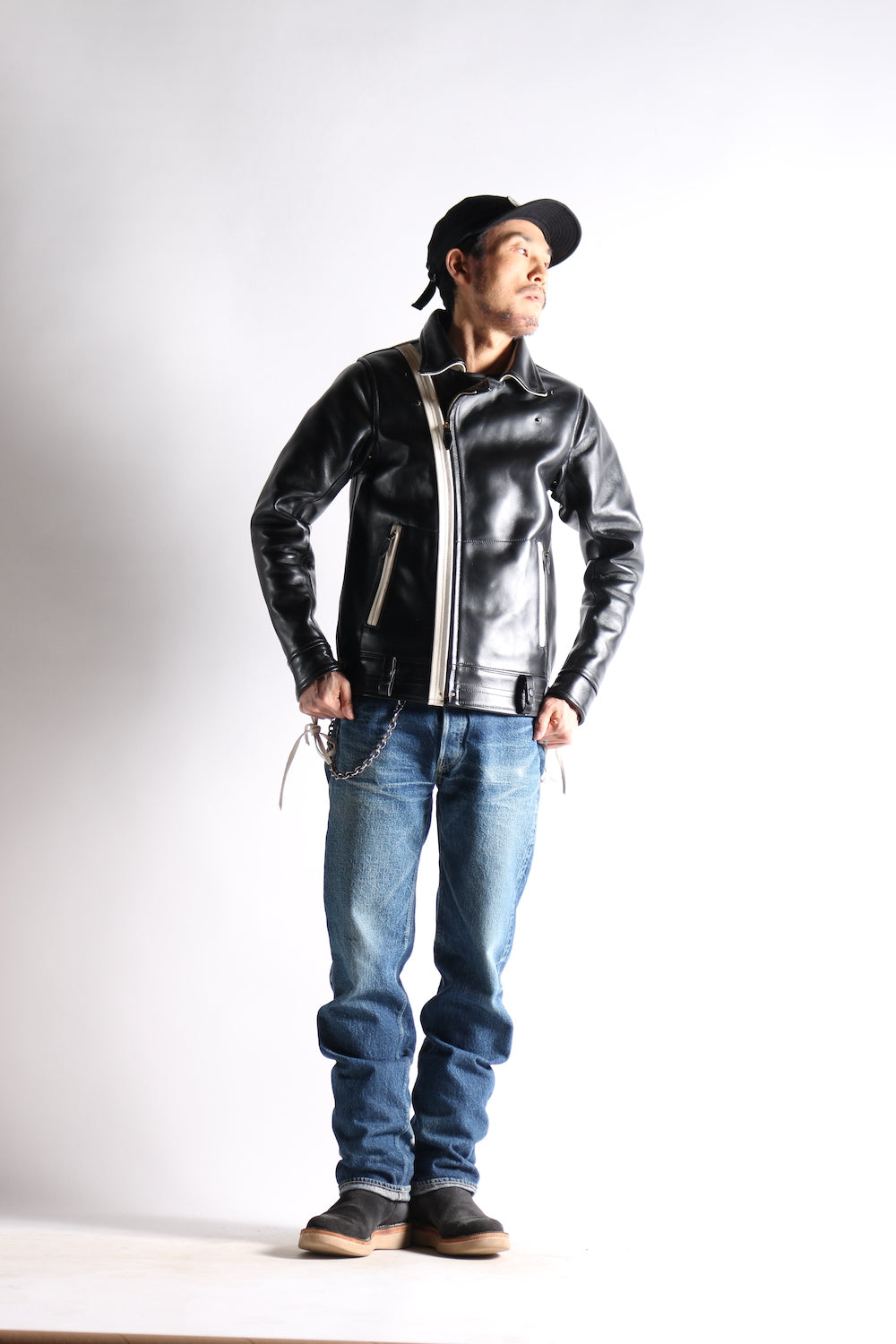 However, there is only one craftsman in Japan who sews all by hand, and all customization needs must be taken into account, including adjustment of shoulder width, chest width, length of clothing, length of sleeves, width of armholes, etc. In terms of leather, there are also cowhide, You can choose between goatskin, deerskin, and horsehide. In addition, you can choose through-dye or tea core leather for the leather texture. The rest include the gloss of the leather surface, the overall weight, the brand selection of hardware zippers, lining, belt loops, Seam color, etc.
