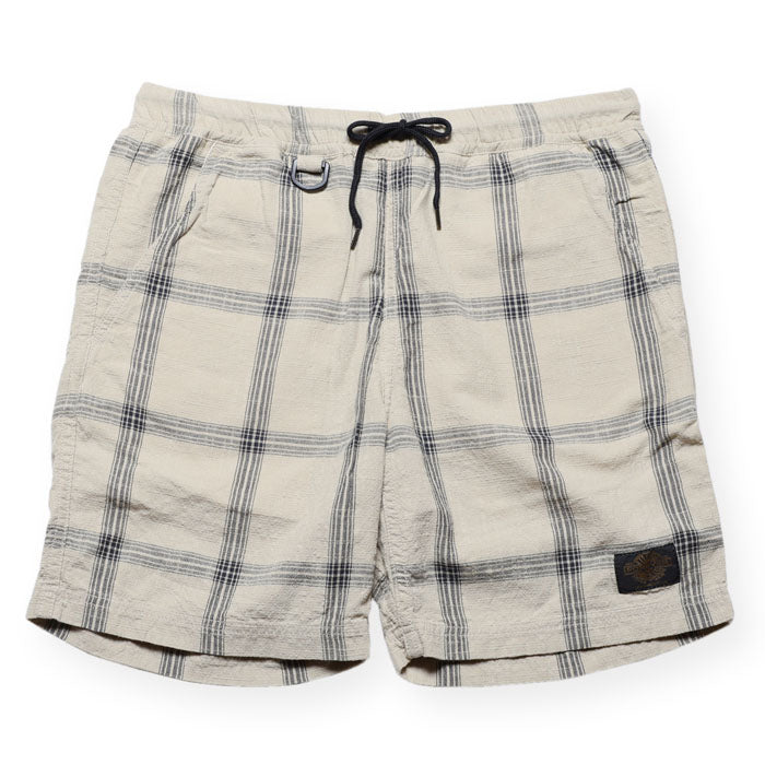 The adjustable waistband design of TAYLOR SHORTS became popular under the name "EASY SHORTS" and is a popular style this season. Rolled seams are used to add a special texture to these shorts.