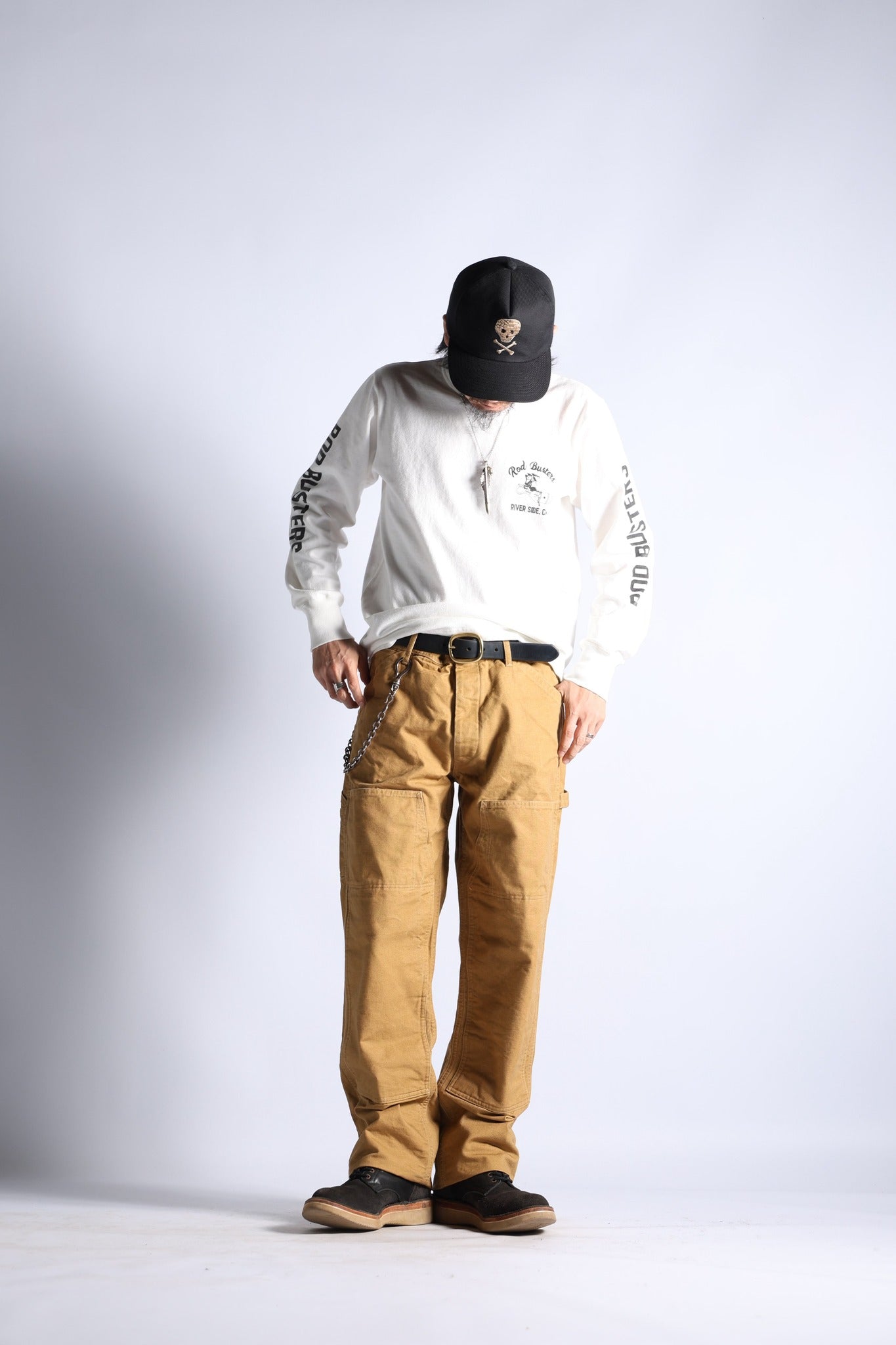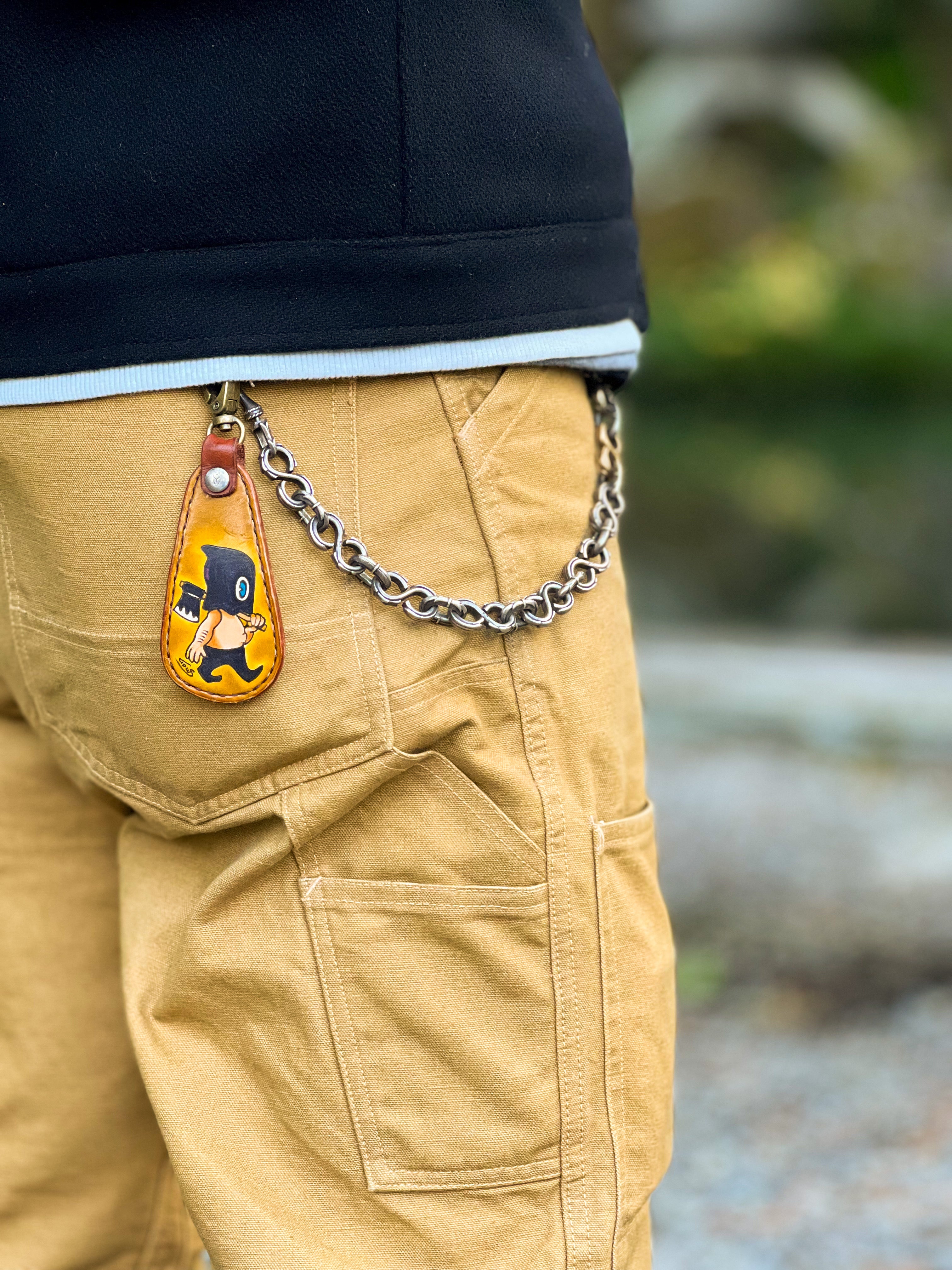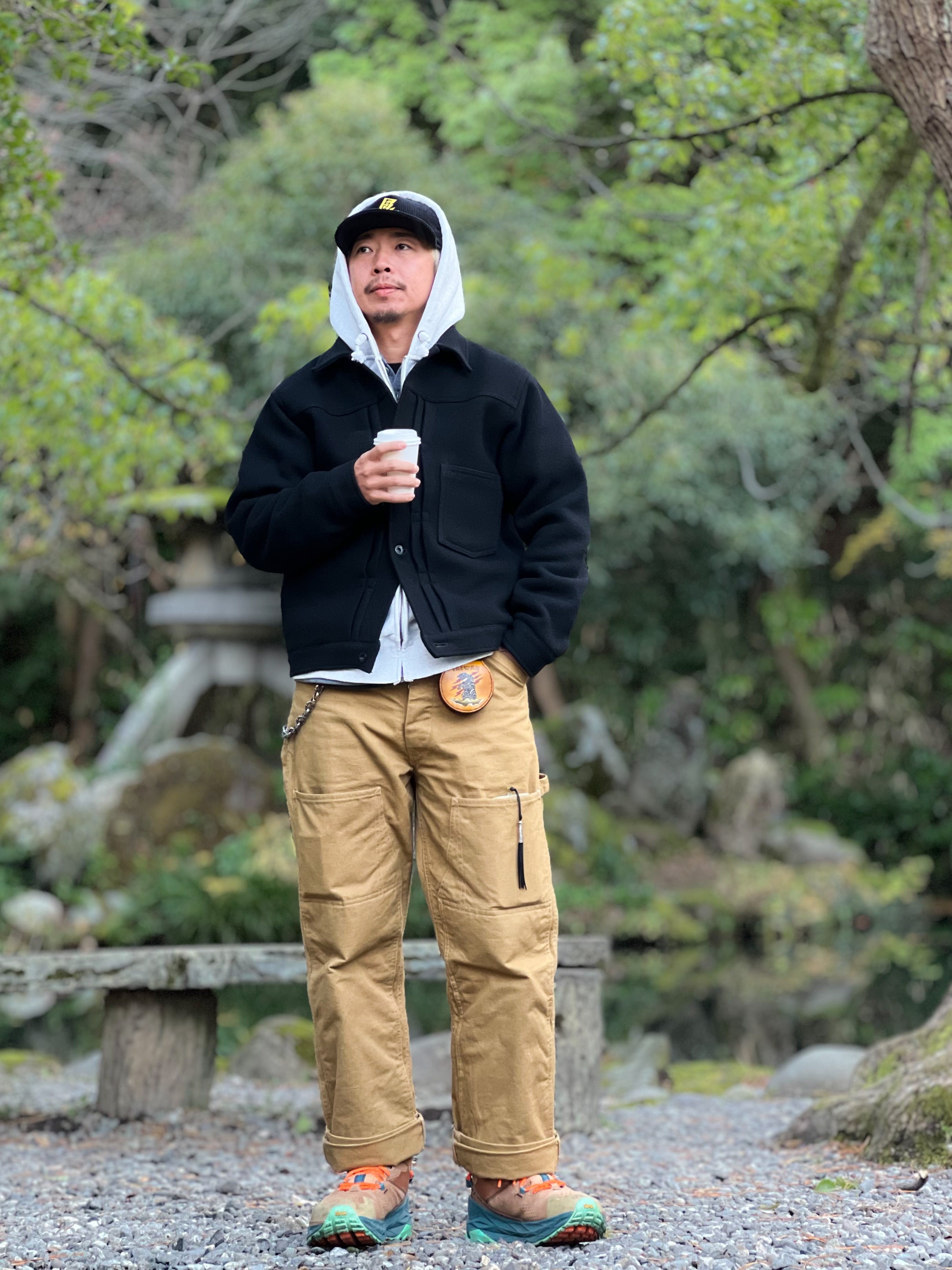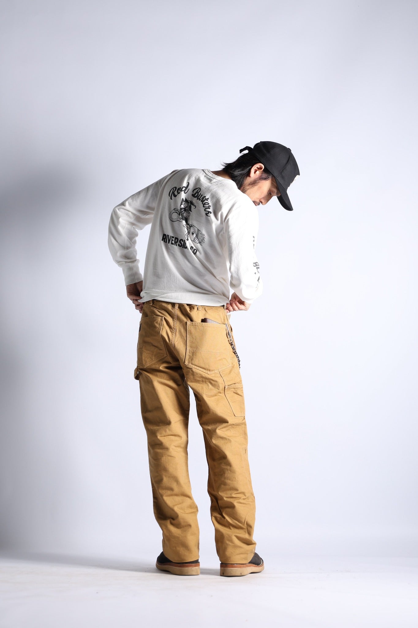 It is made of original Oxford cloth and treated with sulfur dyeing to a natural beige tone . All the main seams are made with the three stitches of work pants, which improves strength and durability! The straight wide trouser legs are paired with a large area of ​​double-layer reinforcement at the knees, and lightweight foam materials are added inside for sewing. In addition to giving the diamond-shaped stitching a slightly three-dimensional feel, it also makes the knees feel softer! And the upper part of the knee reinforcement, The front thigh pocket can be used to store mobile phones, cigarettes, etc., which is very convenient!
