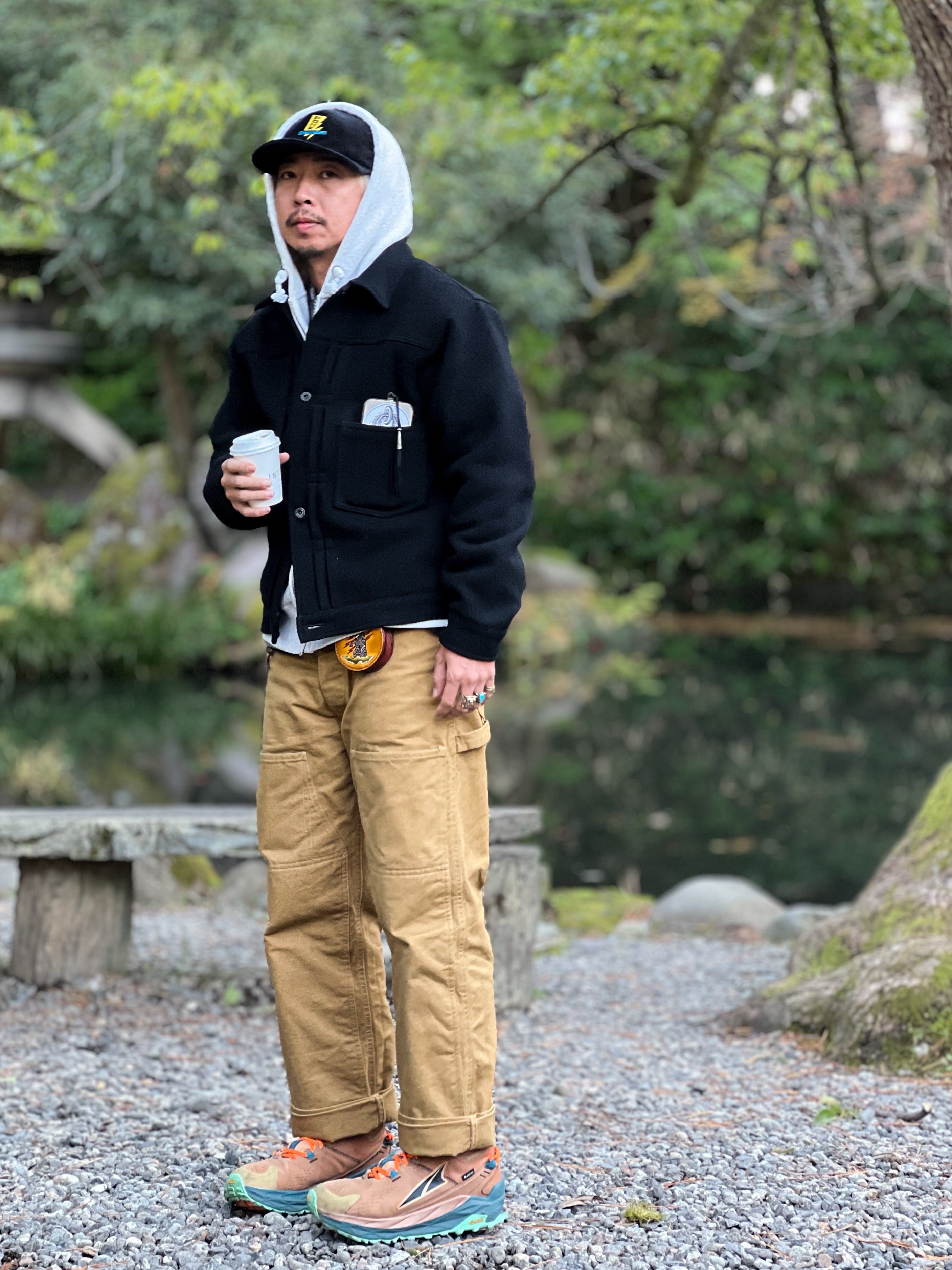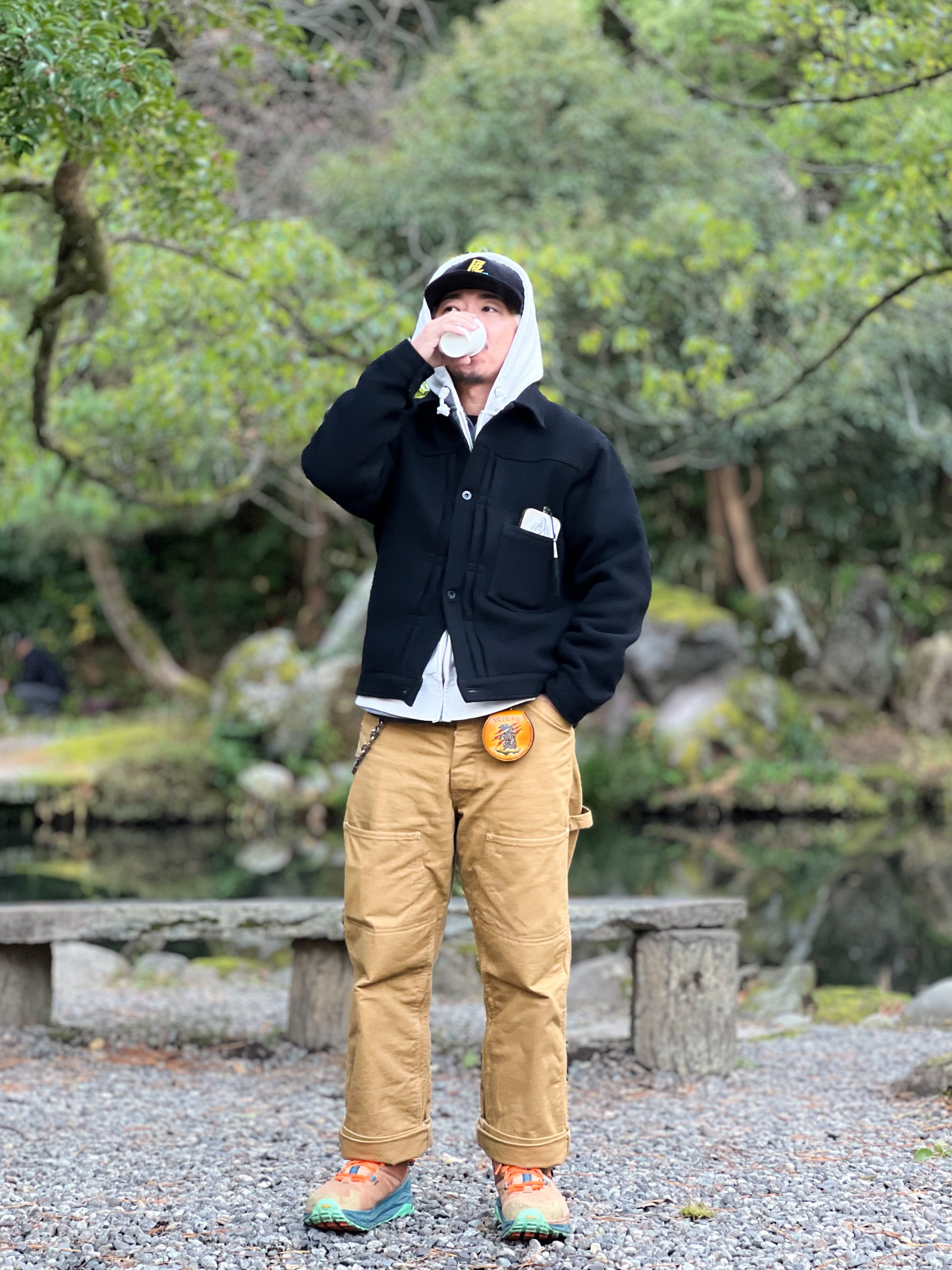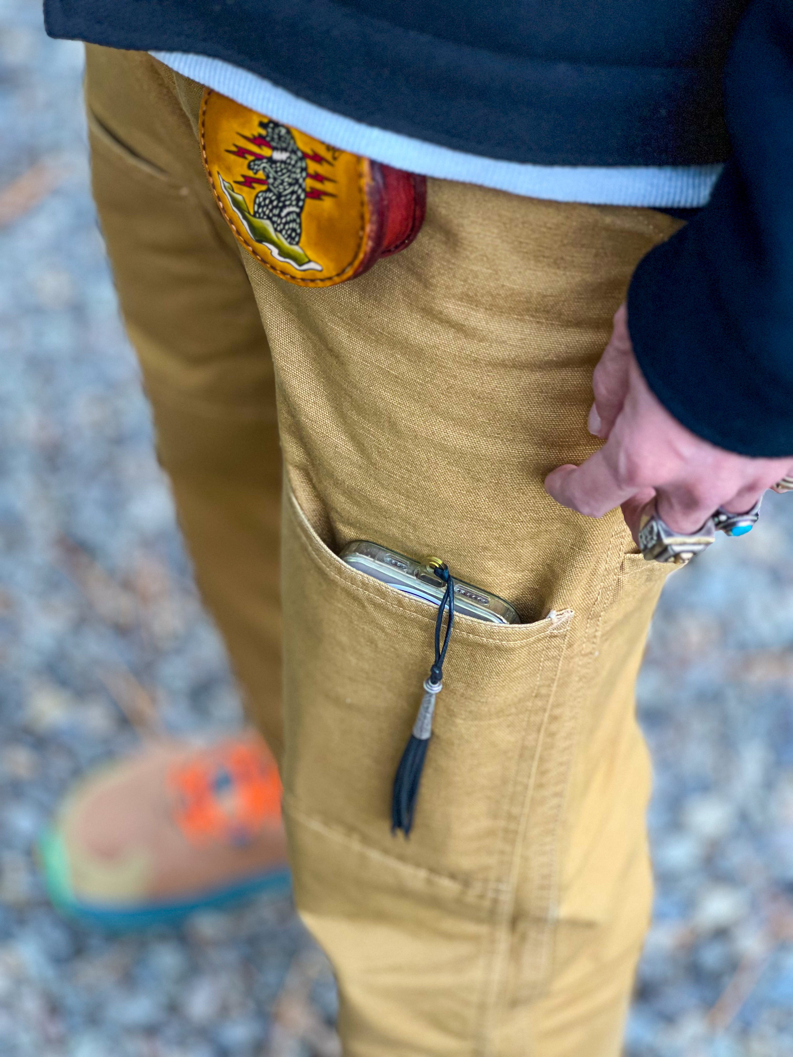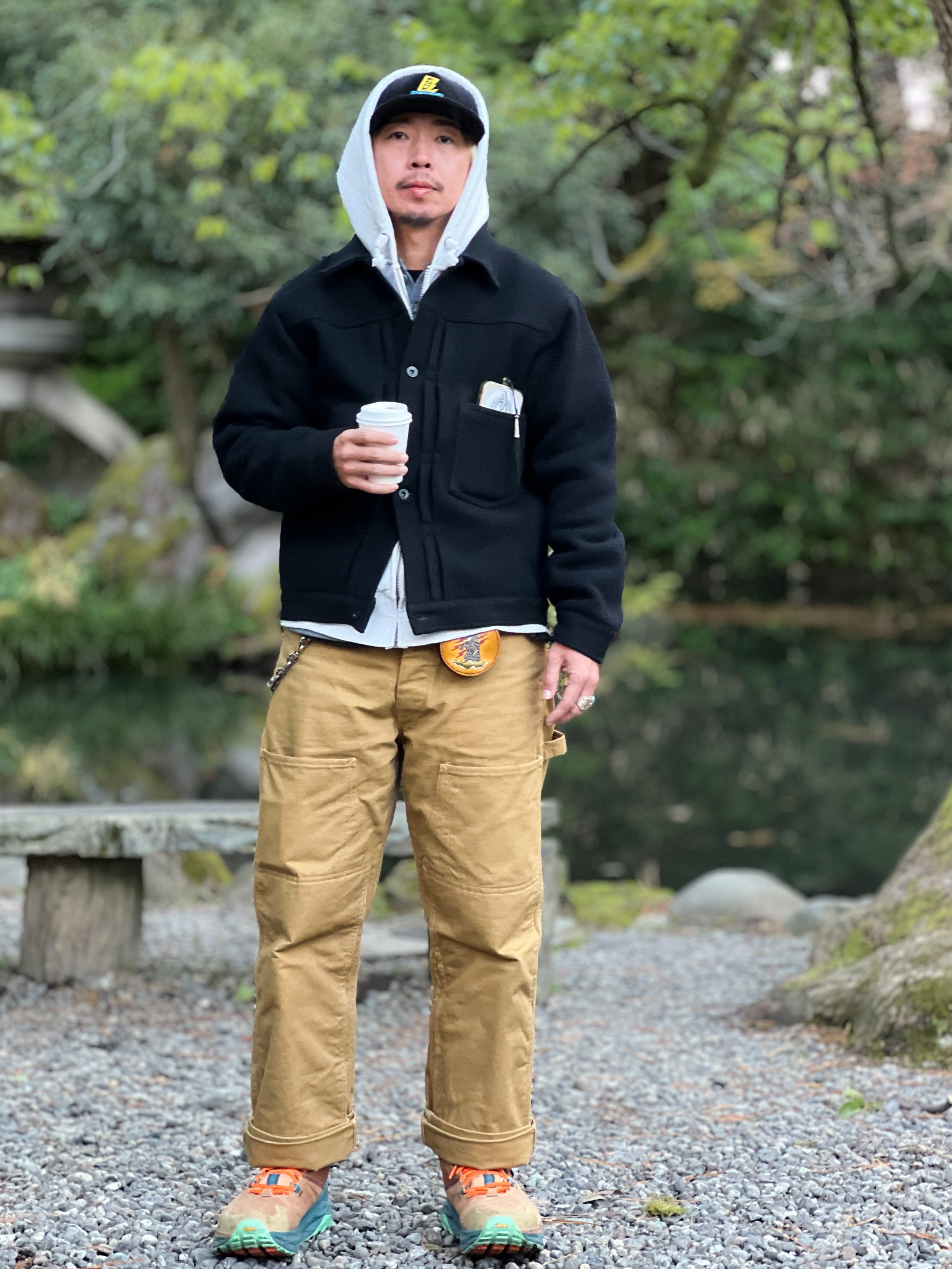 It is made of original Oxford cloth and treated with sulfur dyeing to a natural beige tone . All the main seams are made with the three stitches of work pants, which improves strength and durability! The straight wide trouser legs are paired with a large area of ​​double-layer reinforcement at the knees, and lightweight foam materials are added inside for sewing. In addition to giving the diamond-shaped stitching a slightly three-dimensional feel, it also makes the knees feel softer! And the upper part of the knee reinforcement, The front thigh pocket can be used to store mobile phones, cigarettes, etc., which is very convenient!