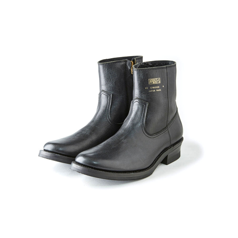 使用 ADDICT BOOTS 系列中的 CL 楦頭的馬皮拉鍊西部靴,相比於 ST 楦頭,這款鞋頭的體積進一步壓縮,使其重新構建成如同正裝鞋般的外觀。