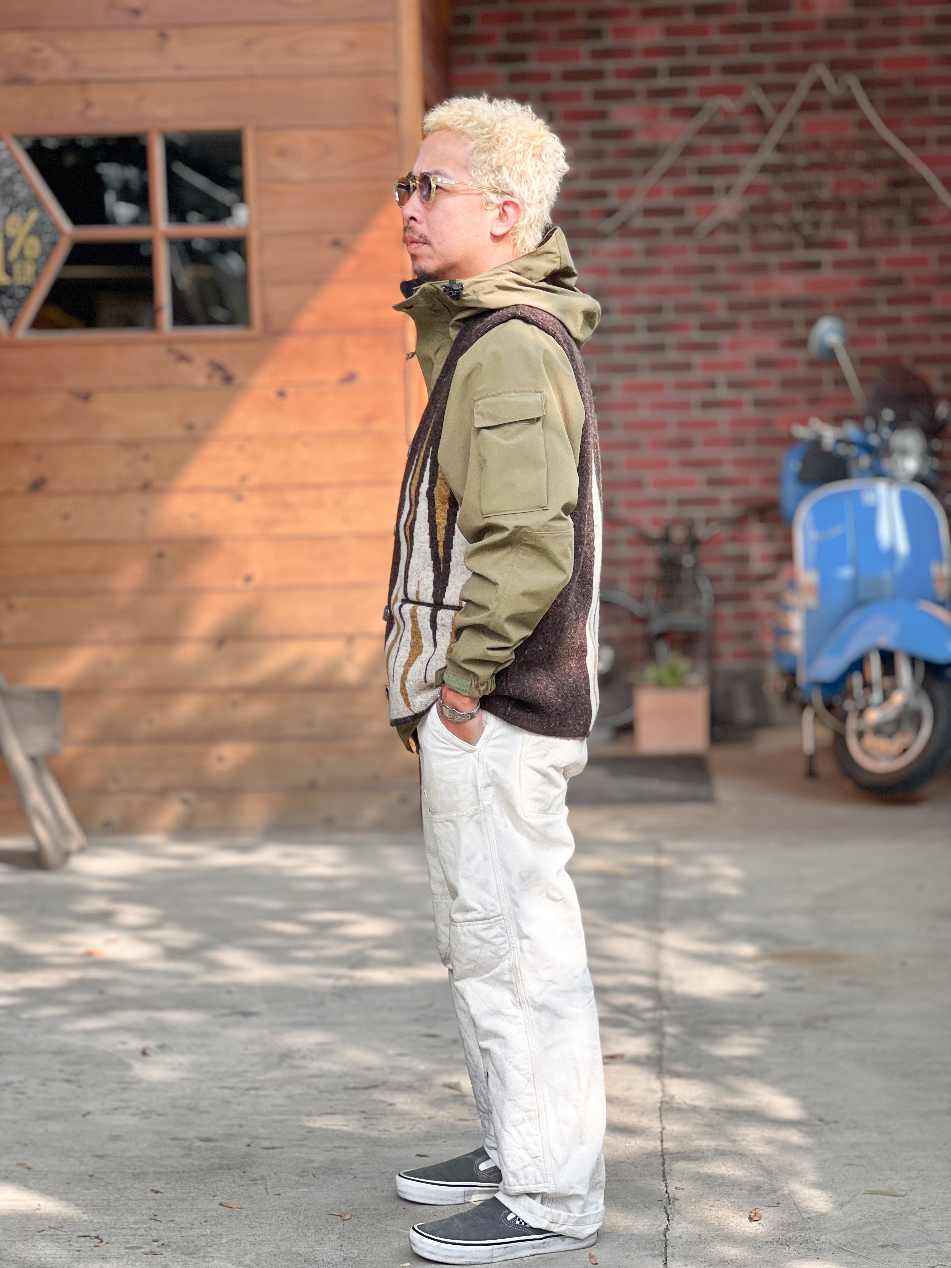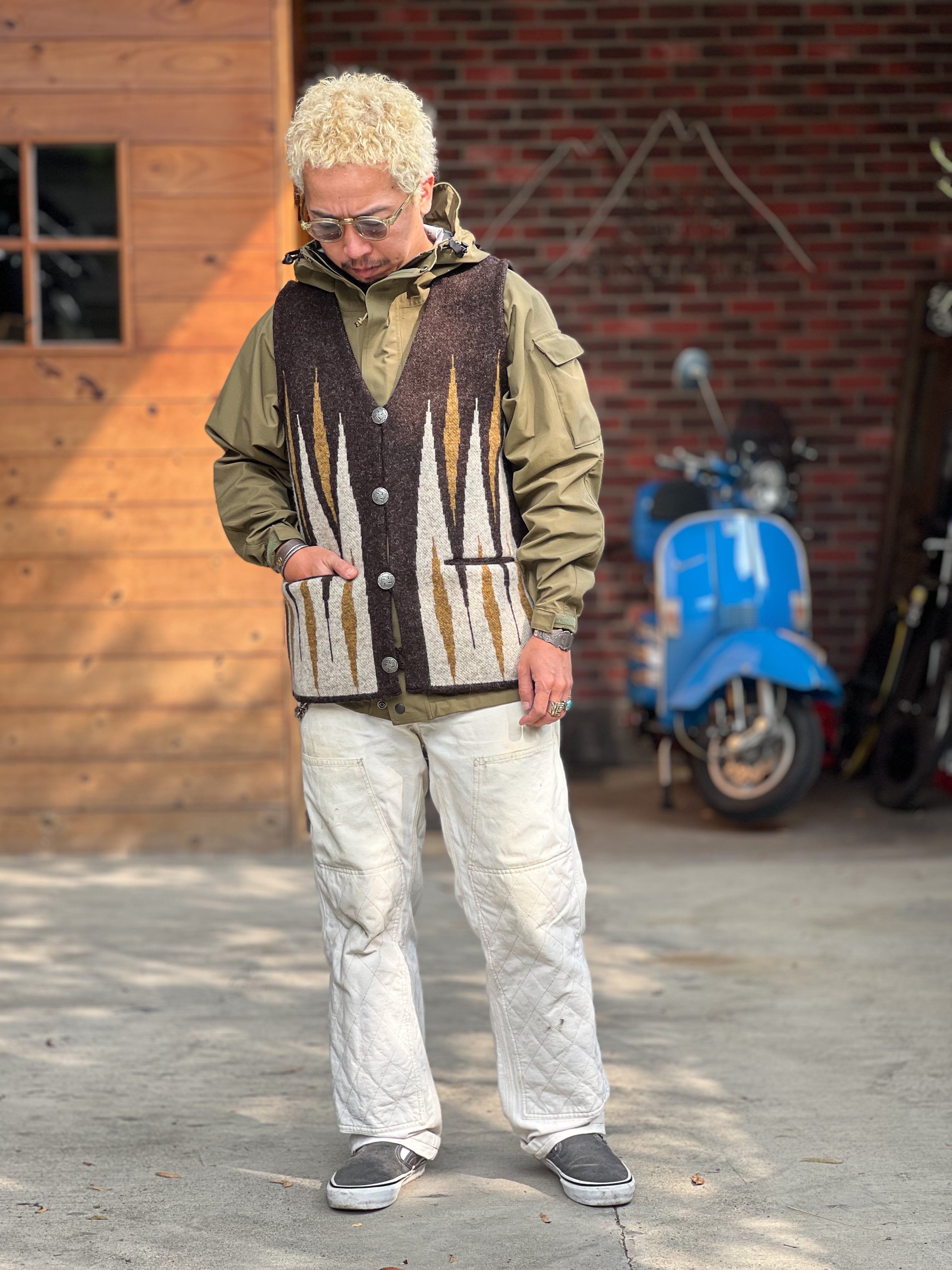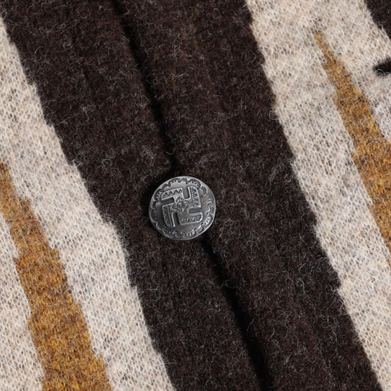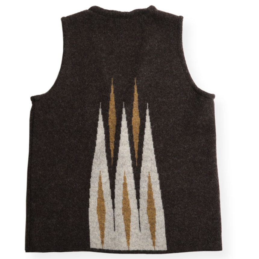 這款背心作為美式服裝的經典代表。WEST RIDE 選用奢華的雪特蘭羊毛,透過熱處理的強縮絨技術,重現古老 CHIMAYO 織布的獨特質感,並結合獨家的新潟針織技術,呈現出如同古董 VINTAGE 風格的菱形織紋,並透過 WESTRIDE 新潟自家針織技術展現出獨創的風貌。