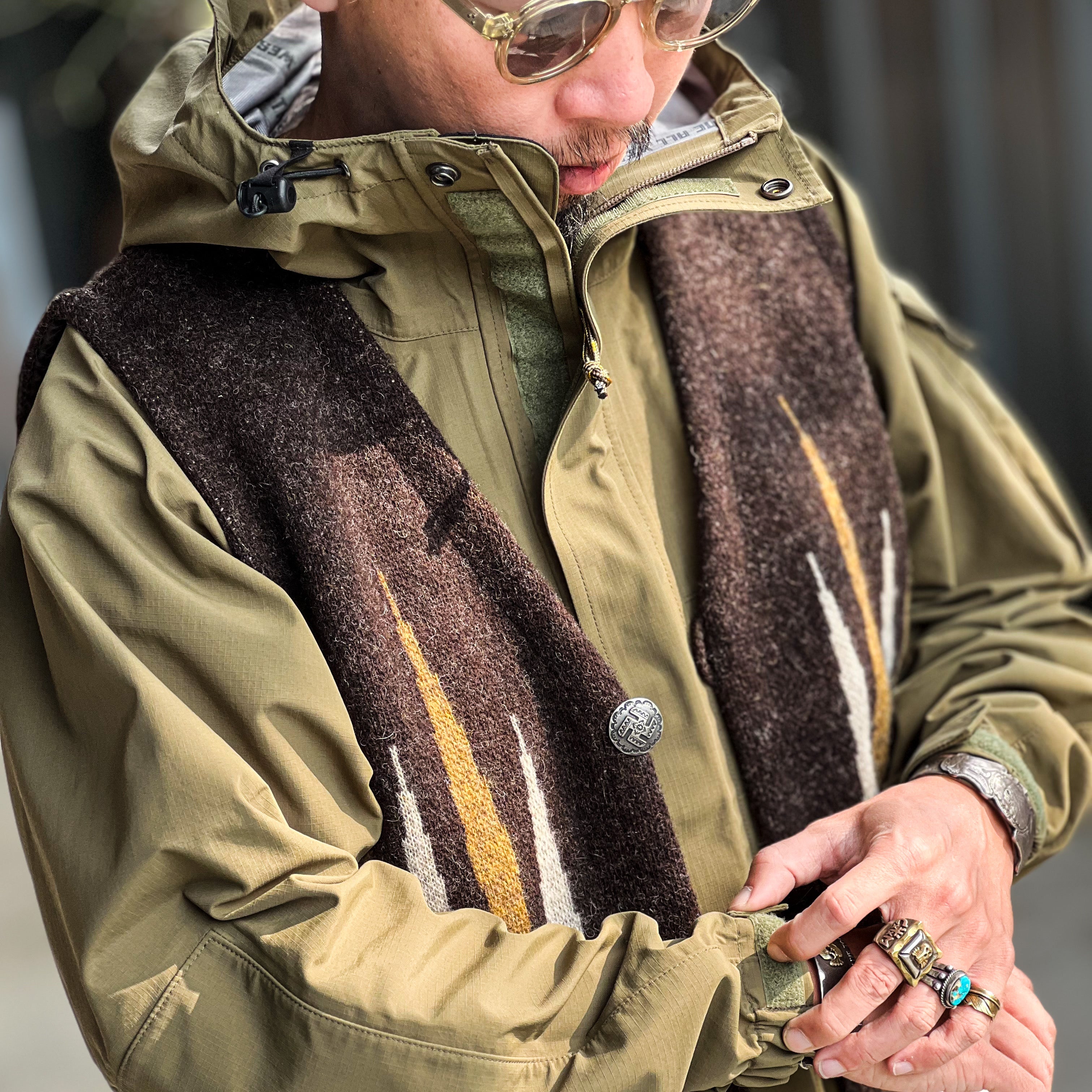 這款背心的亮點之一在於特別定製的扣子,由知名銀飾藝術家 CHOOKE 小野寺氏打造,以銀為原型製作的鎳釦,經過燻黑處理呈現出充滿年代感的復古效果。此外,背心的各處細節均配有人造絲補強布,整體設計結合優質素材與精緻縫製工藝,展現了新潟製造的工藝水準,非常適合多層次穿搭,讓造型更具層次感與變化性。