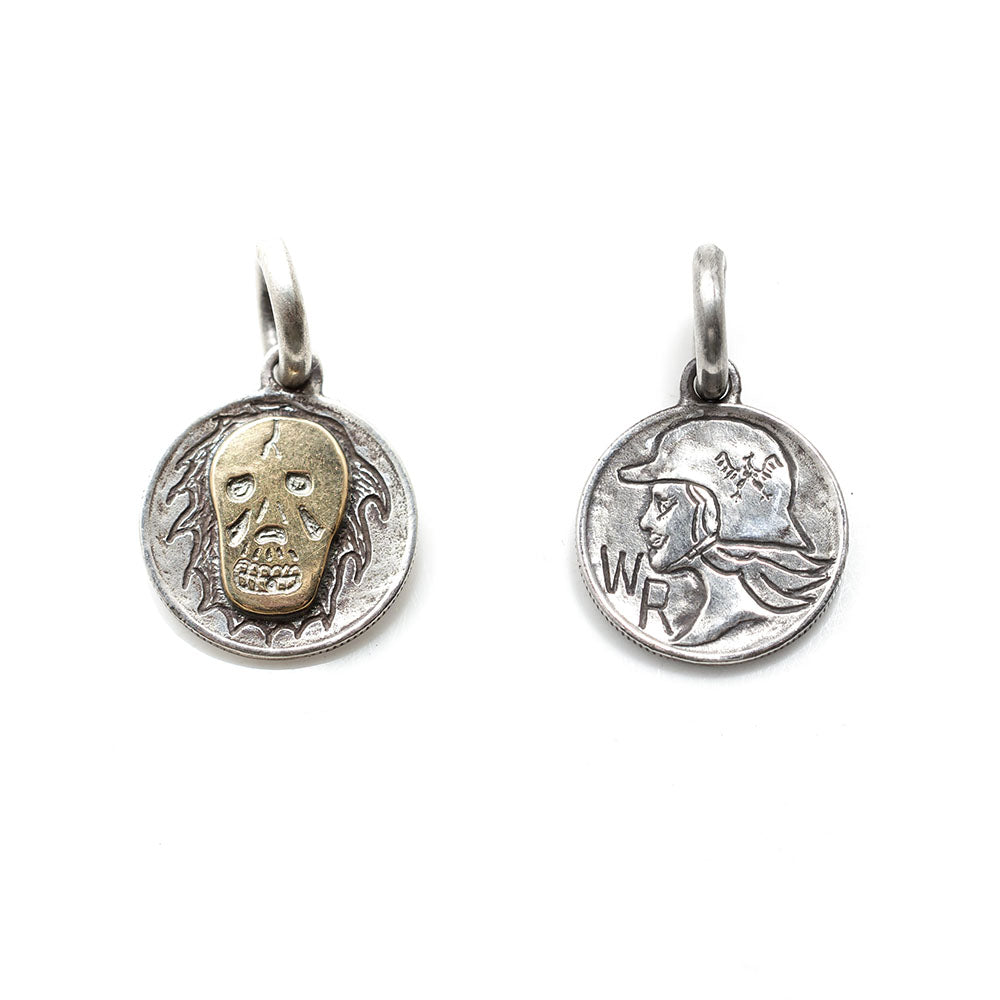 銀幣兩面圖樣其一為 West Ride 主理人 中井先生哈雷油箱上的 Ghost 圖樣,特別以奢華的 18K 製作,金銀色調的堆疊,讓立體層次更迷人!而另一面的女神頭像面朝左,也正巧與 West Ride 靈魂人物 Catherine 方向相同。Chooke 巧妙的將女神樣貌修改成頭戴德軍鋼盔的 Catherine,以繁複的手工敲製銀幣,完成後再鑄造而來!