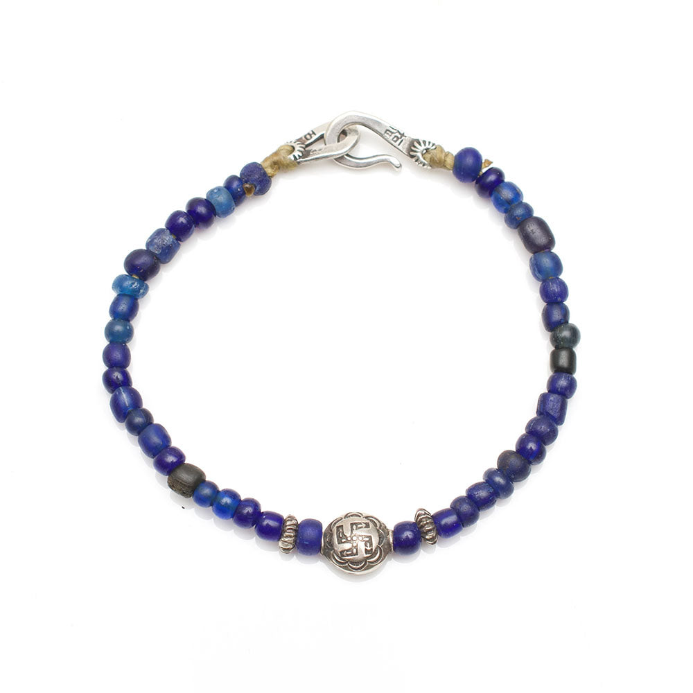 使用 1800 年末到 1900 年初的古董貿易珠,絕妙的不規則手工感與不平均的藍色光澤均透露著舊時代的美麗風華。