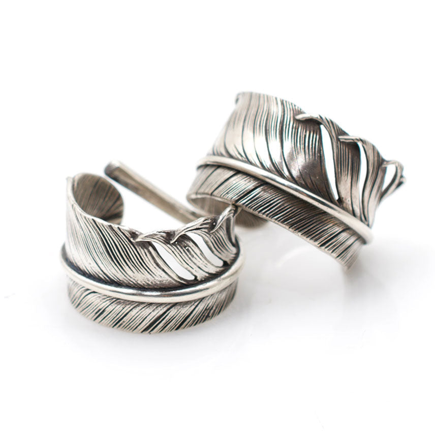 以最古老的印地安製銀技術 Coin Silver 完美轉化的手工藝術作品,以銀幣餘料 Junk Coin 鎔鑄碾壓切割出羽毛形體,手工敲擊打印一道道羽毛紋路,戒指內側的品牌 Logo 倒『福』字打印在老鷹圖樣上,同時也有著『福到』的美好意義。