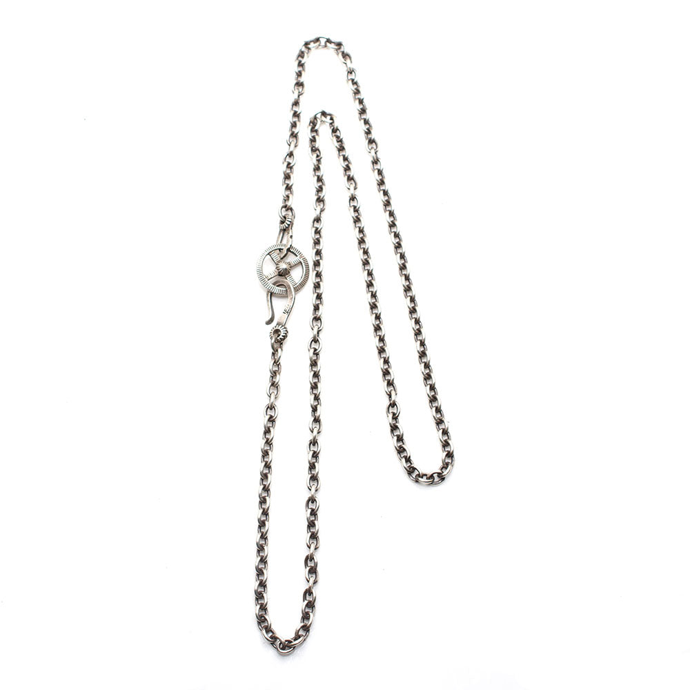 具有份量感的Medium Oval 銀鏈,搭配簡約的銀菊與福字打印小藥輪,銀勾與銀環為銀幣製成,上頭還有著非常漂亮的印地安打印圖騰,氧化後會更為迷人。