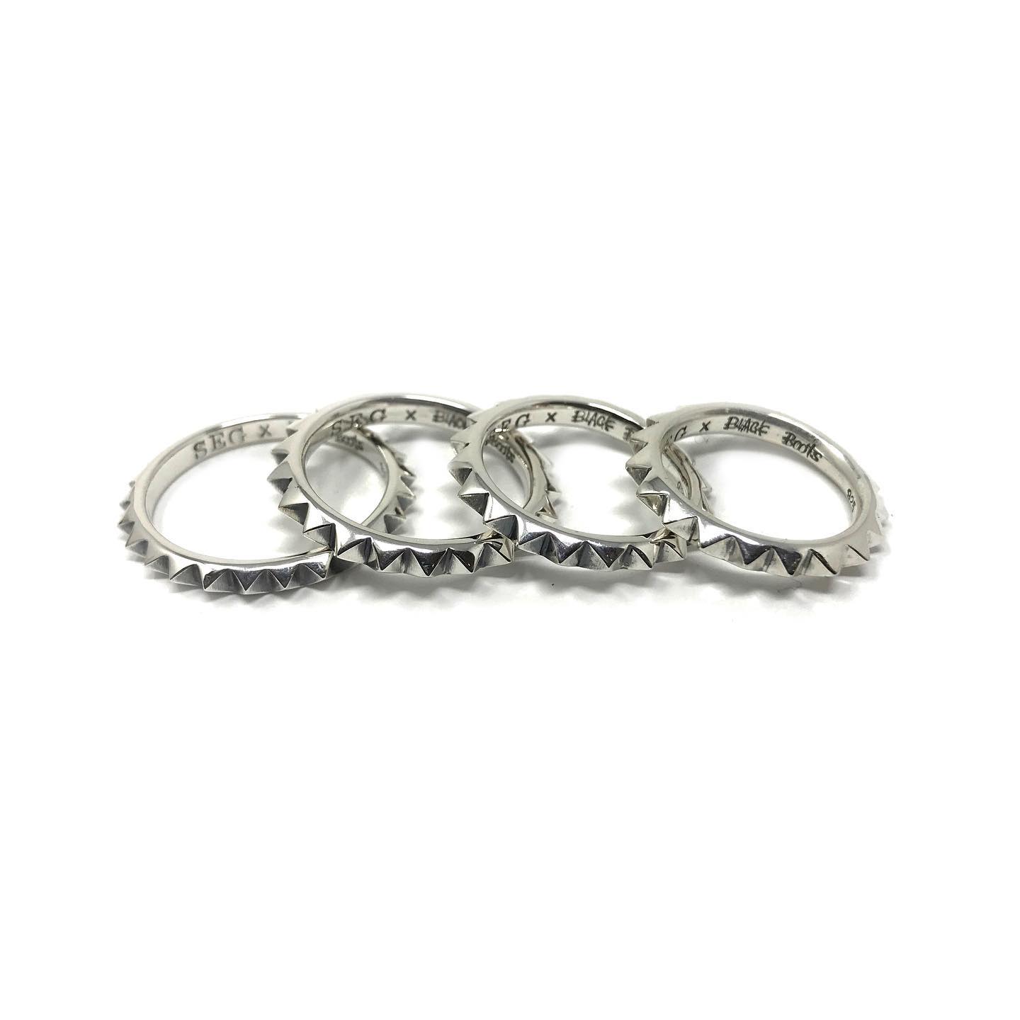 純銀卯釘戒指,可單獨配戴,刻意製作略細的寬度,與他款戒指共同佩戴也很協調。