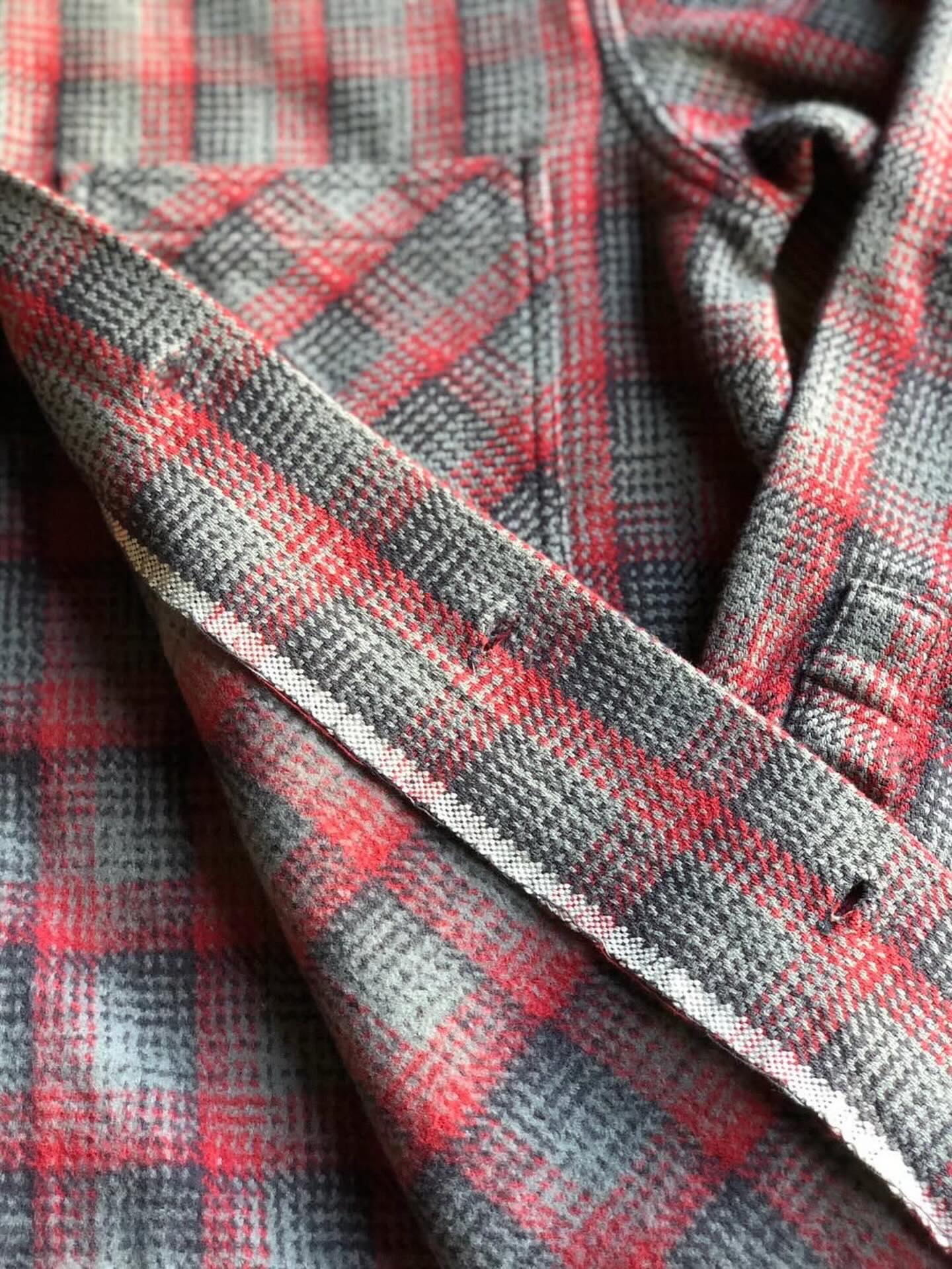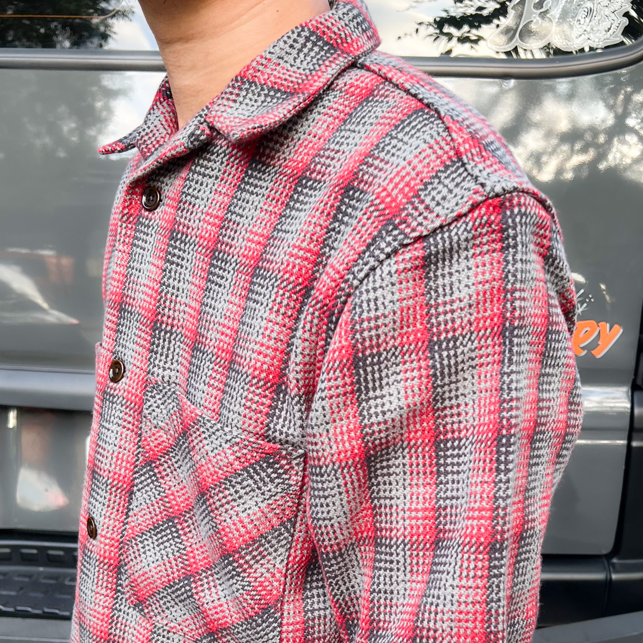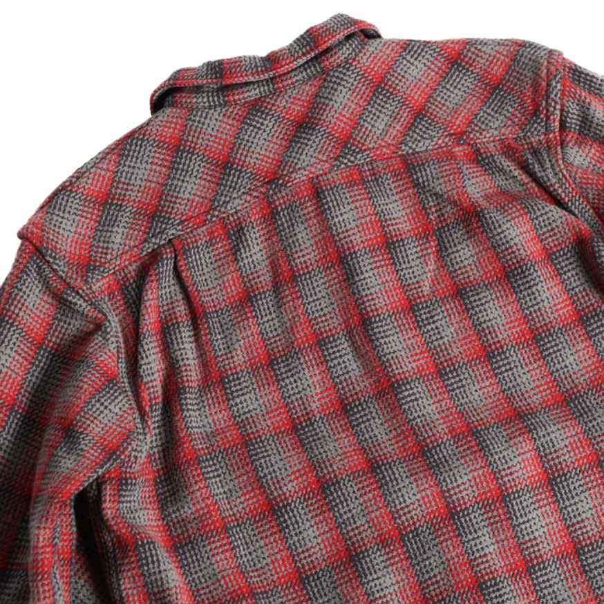 100% 純棉材質,經紗採用 10 號雙股紗、緯紗為 8 號單紗,運用至新潟力織機可使用的極限紗線規格所構成。厚實的布料質地,表面輕微起毛、內側深刷毛,形成柔軟細膩的觸感,是 WESTRIDE 原創的重磅斜紋格紋面料。