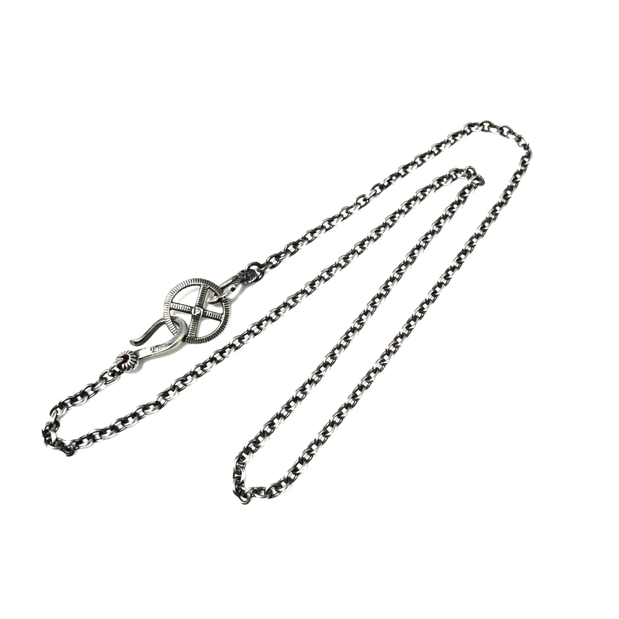 Small Oval 是 Chooke 定番銀鏈中偏粗的一款,比起最粗的 Medium Oval 鏈目略小一些。銀勾、銀環與藥輪皆為銀幣餘料製成,本次搭配的藥輪為銀幣邊緣的鋸齒紋理,中央加上了菱形打印,背面亦有福字敲印。粗鏈搭配藥輪的視覺效果相當搶眼,相當適合串組大羽或具有份量感的墜飾。